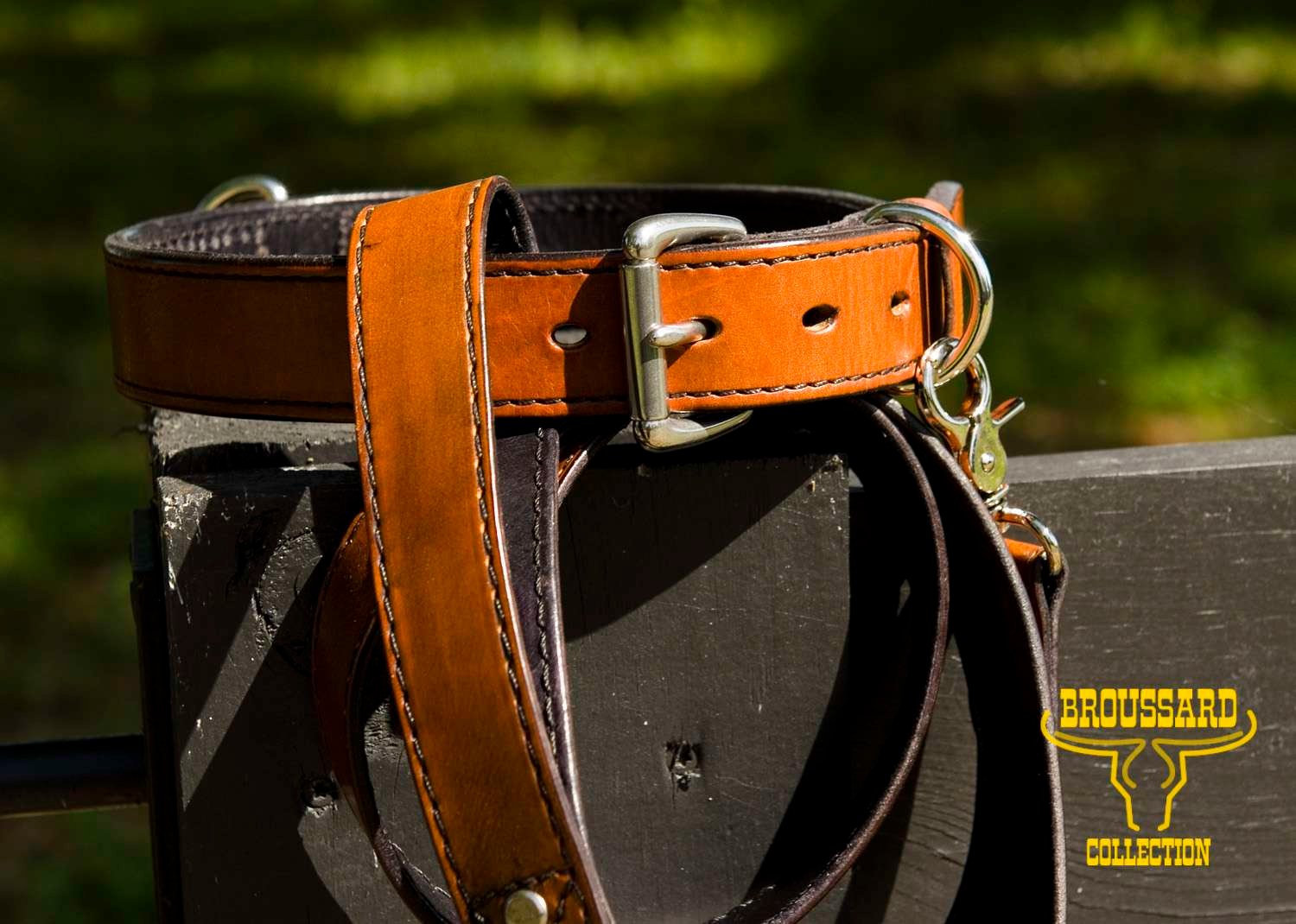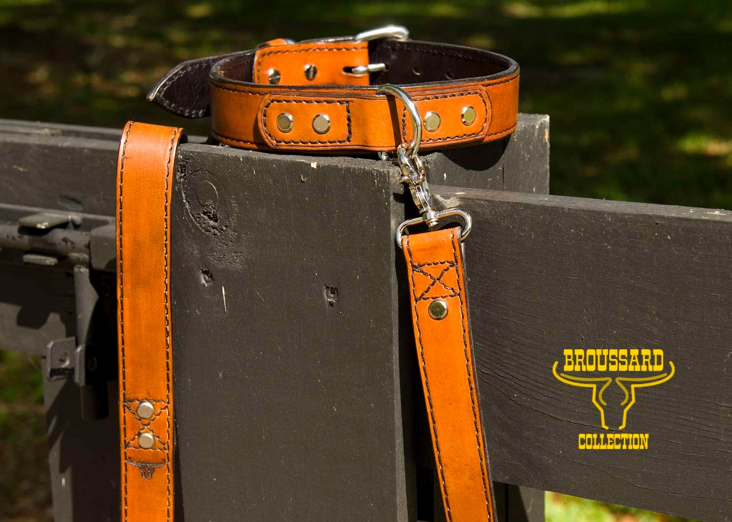 Make your dog the envy of the neighborhood with our Full Grain Leather Dog Collar and Leash. Crafted from the toughest full grain leather, this collar and leash combo is designed to last, while exuding style. The stainless steel hardware adds a touch of style. Whether you have a small or large dog, we can customize the collar to fit perfectly. Proudly made in Cajun Country USA, this collar and leash set is a statement of quality and sophistication for your beloved furry friend.