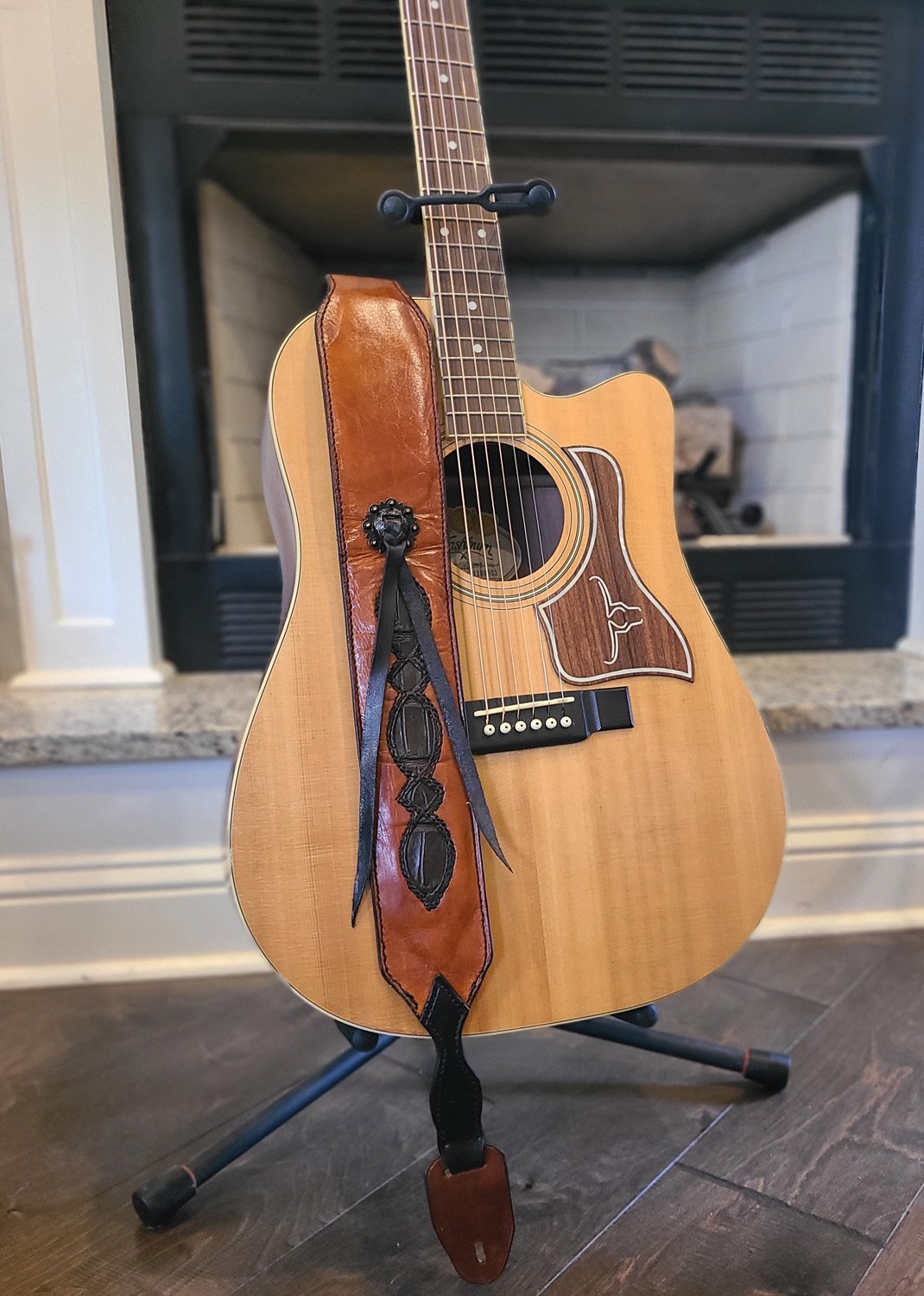 Handcrafted guitar strap made in Cajun Country using premium full-grain leather.