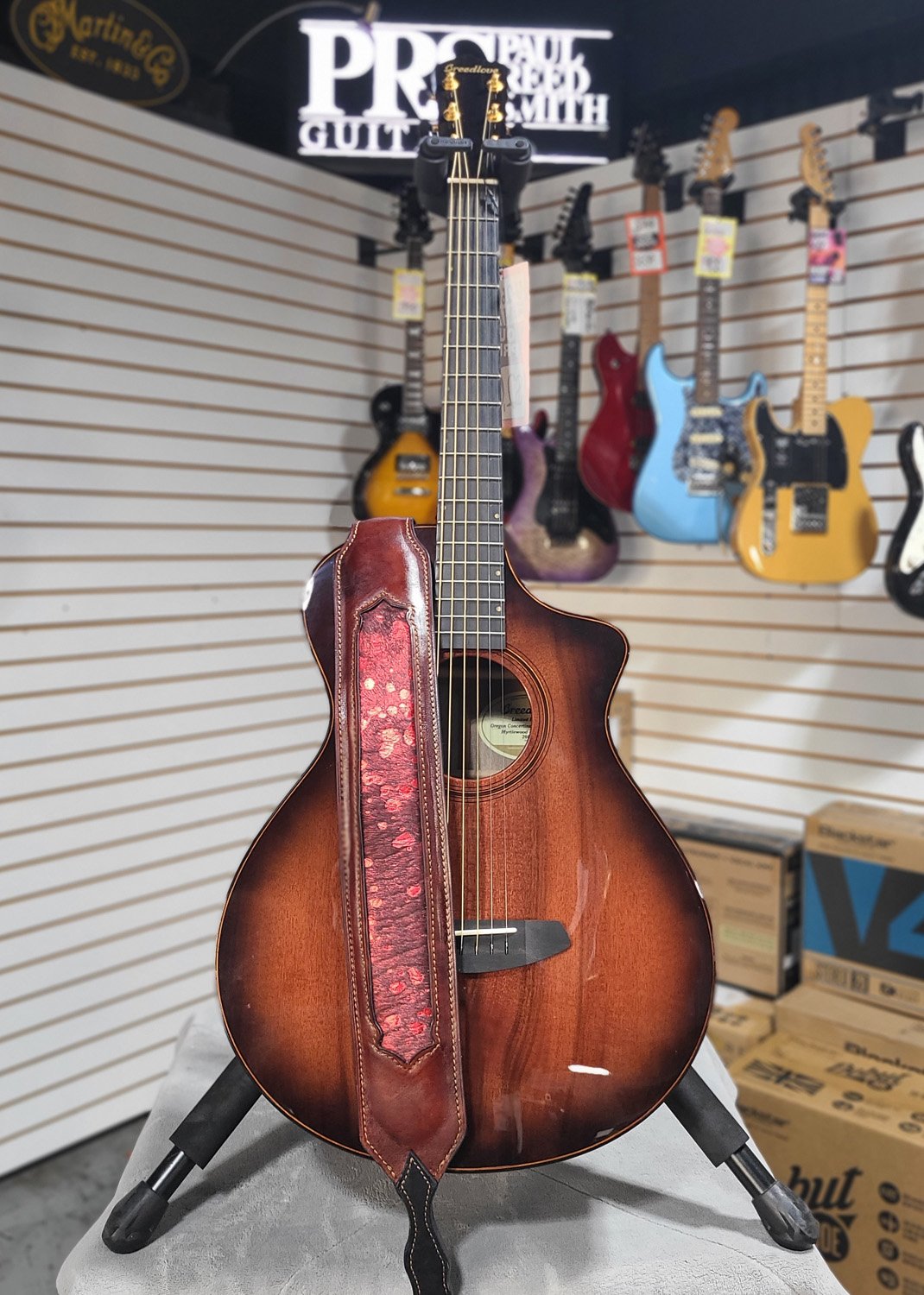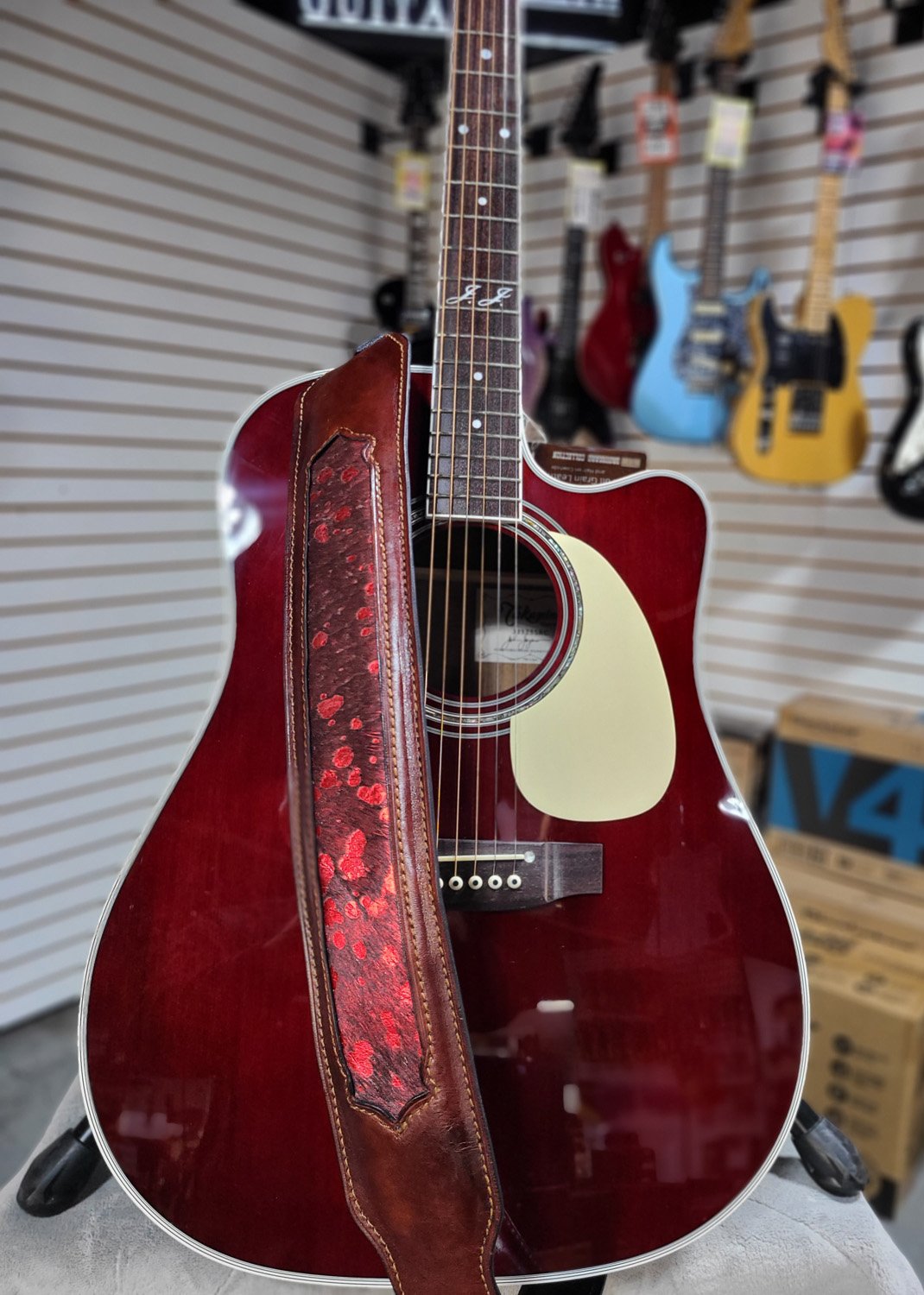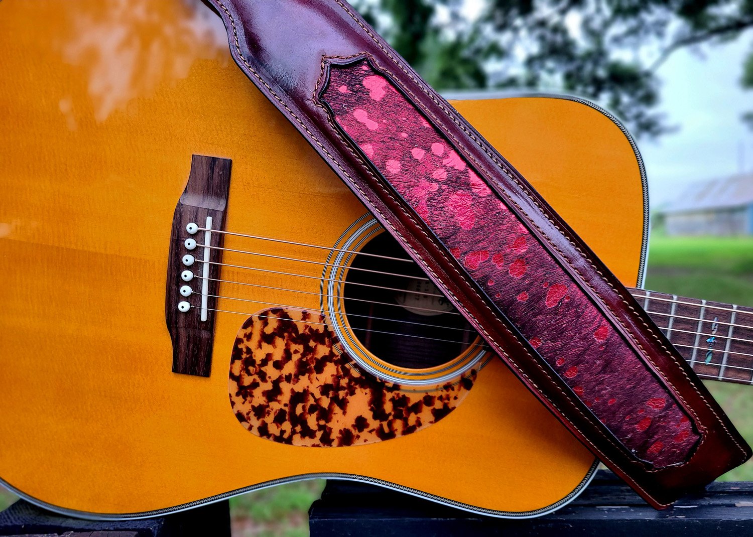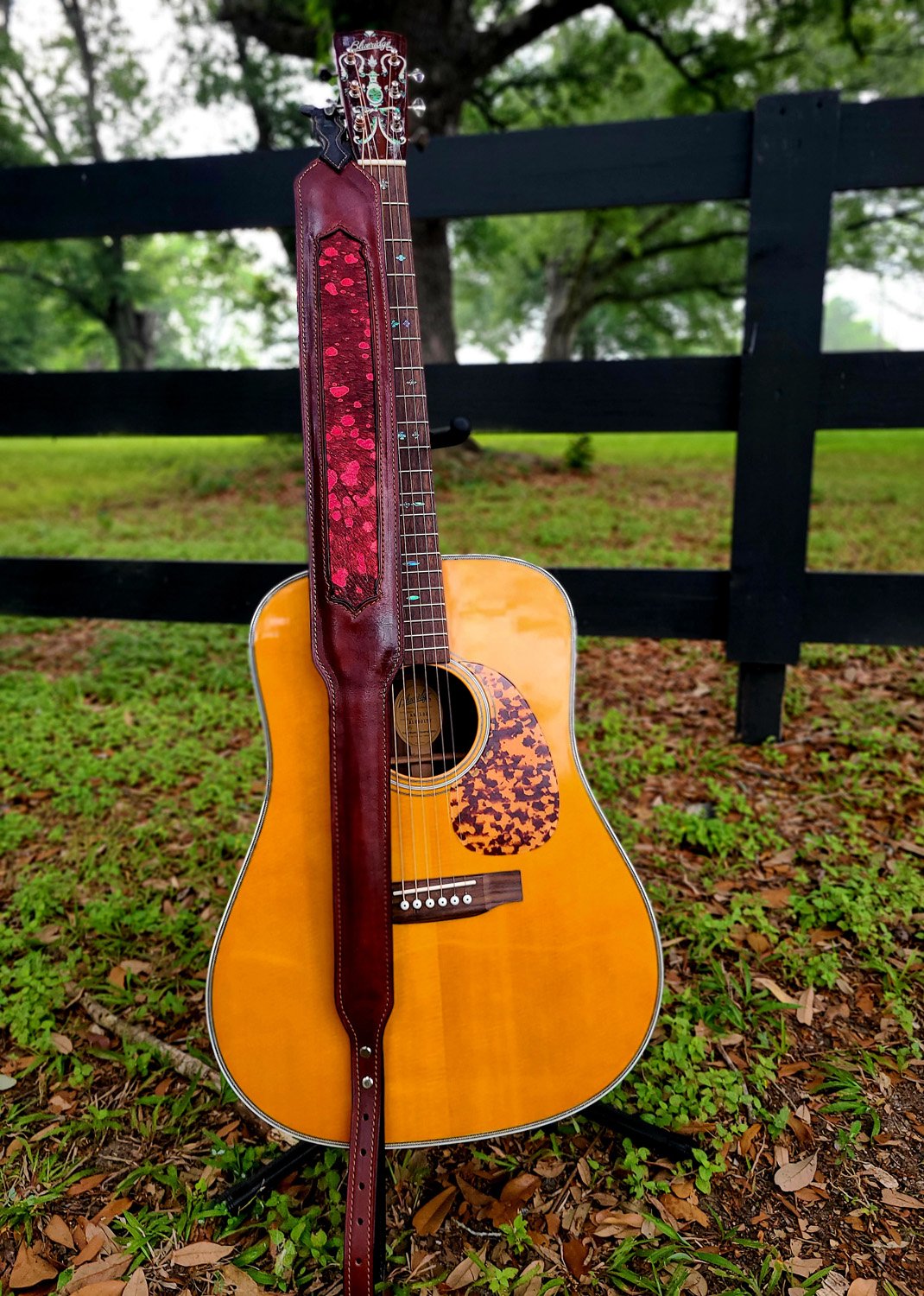 This handcrafted guitar strap is built for comfort, durability, and a bold, one-of-a-kind look on stage.