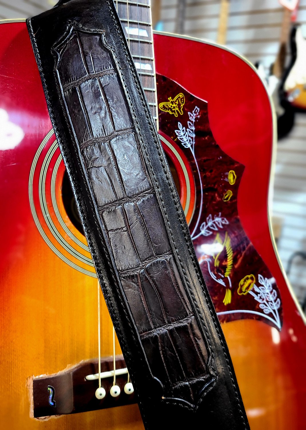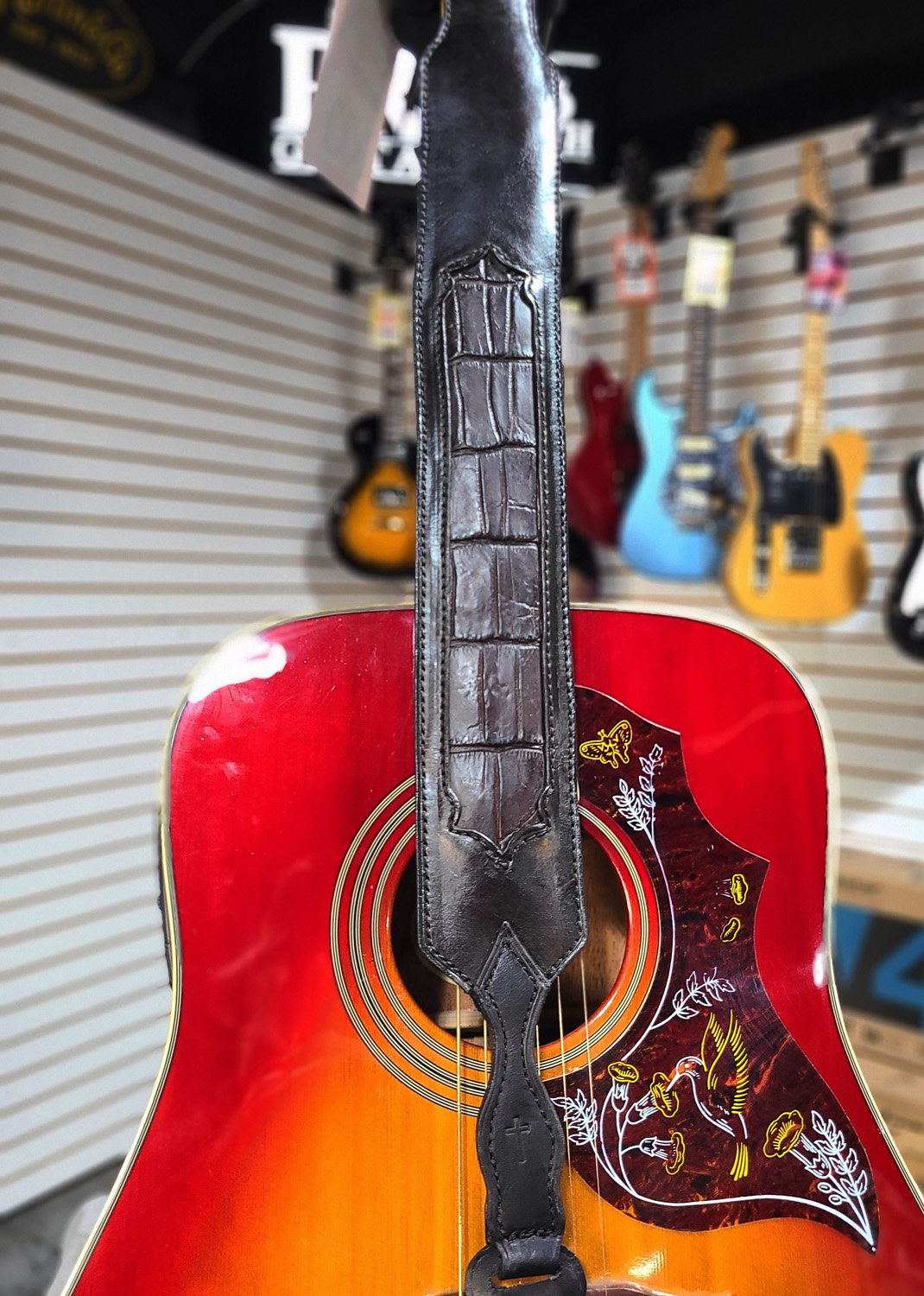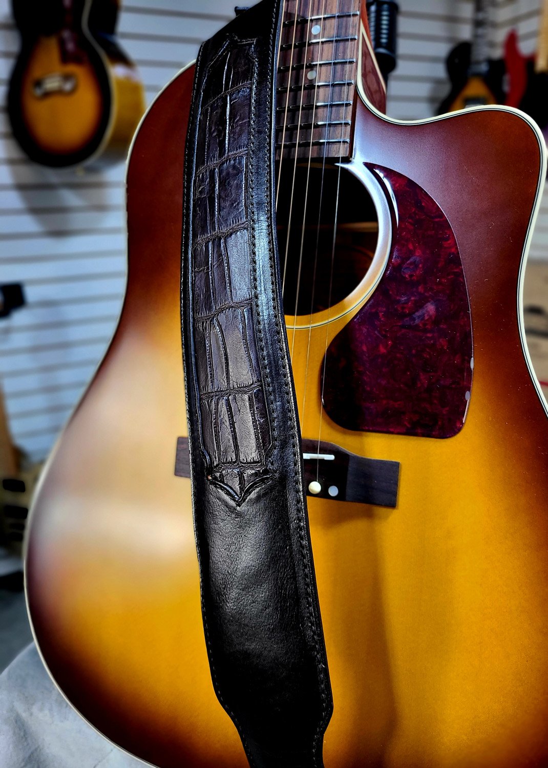 This full-grain leather strap with Louisiana alligator accents was designed to frame the guitar—not compete with it.