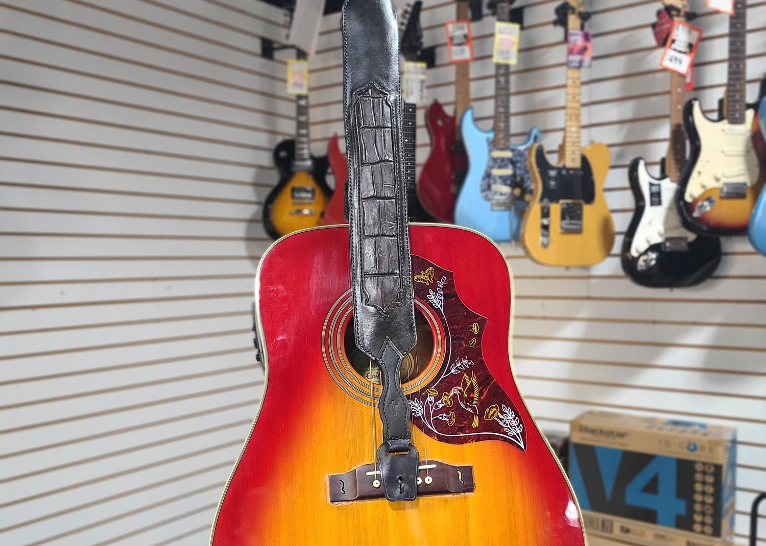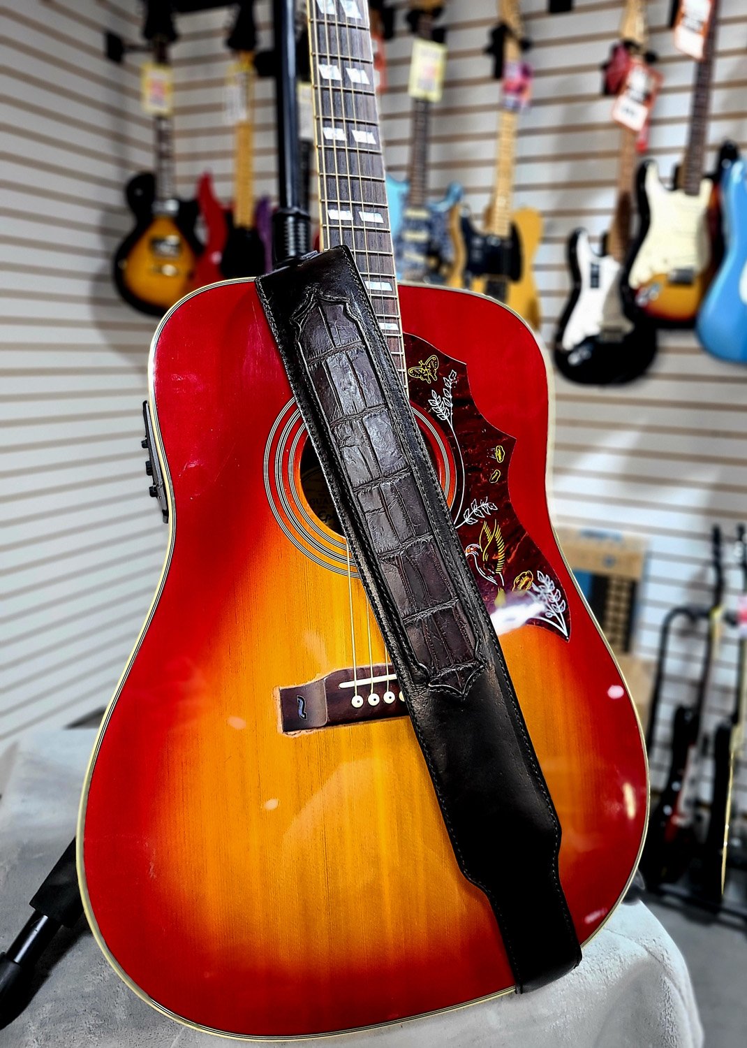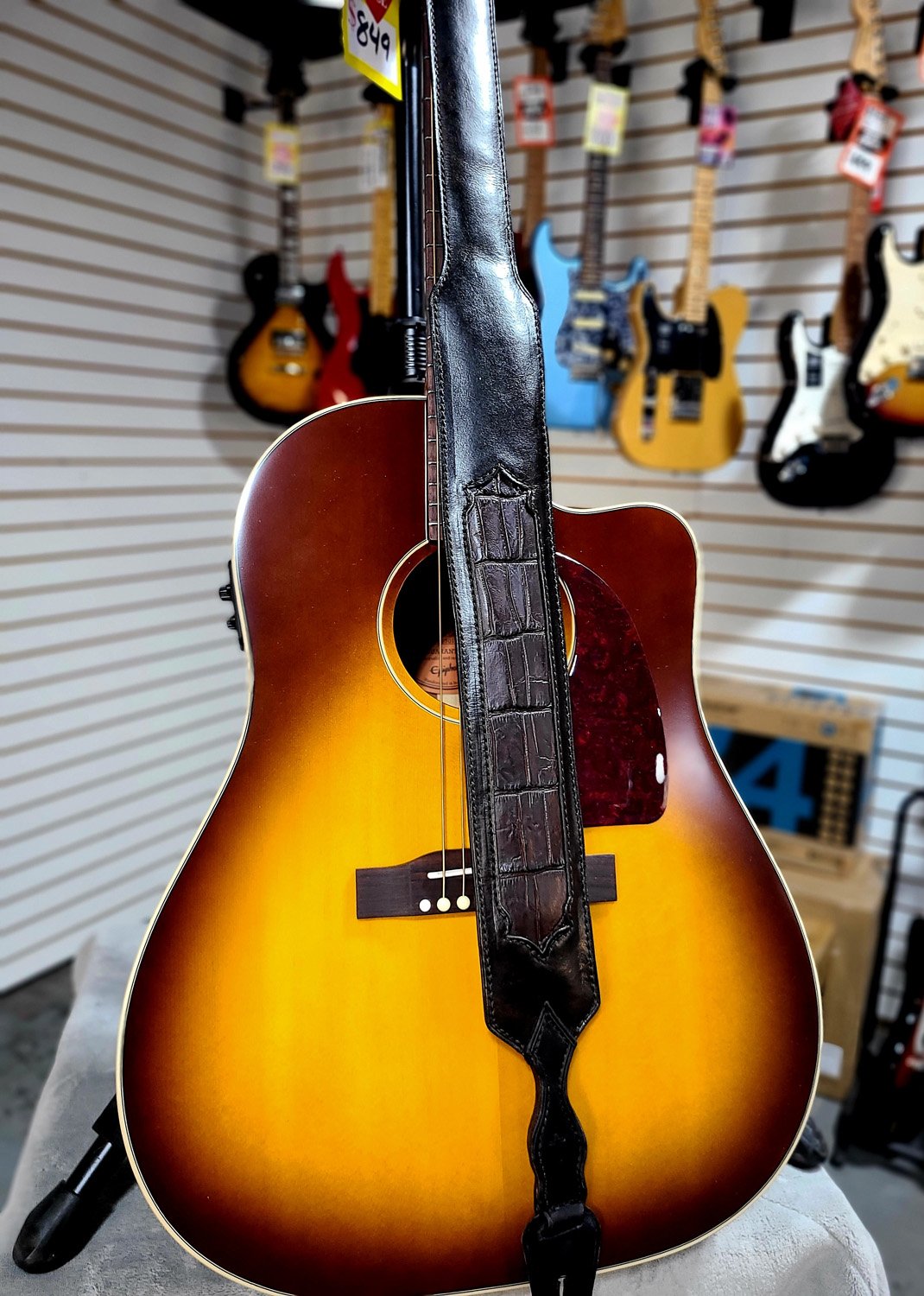 This full-grain leather strap with Louisiana alligator accents was designed to frame the guitar—not compete with it.